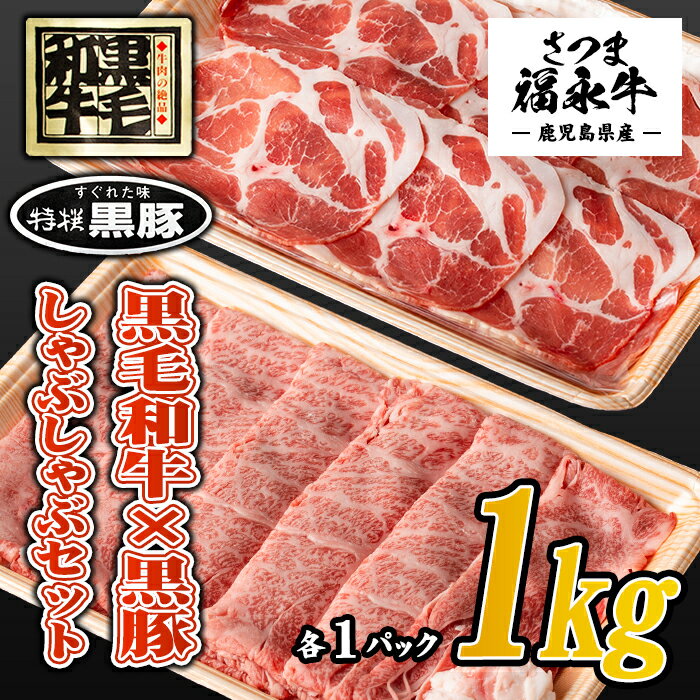 【ふるさと納税】さつま福永牛 鹿児島県産黒豚 黒くろしゃぶしゃぶセット(500g×各1パック・1kg)鹿児島県産黒毛和牛と黒豚をしゃぶしゃぶで!ギフト・贈答はもちろんご自身のご褒美にも【福永畜産】