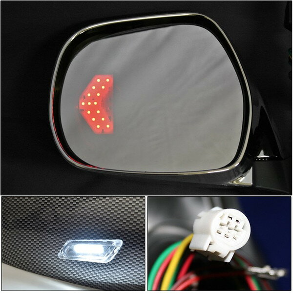 ■付属機能 ・電動格納機能 ・電動ミラー調整機能 ・ミラー外側(カラー:アンバー・ホワイト) ・ミラー内側鏡面箇所(カラー:レッド) ・フットランプ(カラー:ホワイト) ■カラー:カーボン カーボン調ですので今風のオシャレなサイドビューを演出致します。